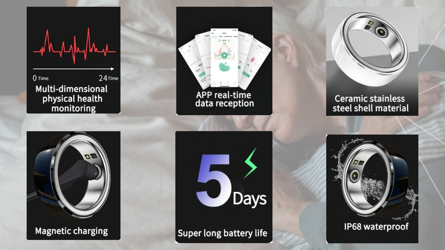 Whether you're exercising, busy at work, or resting, the Smart Ring empowers you with vital health information at your fingertips, enhancing your well-being and peace of mind."